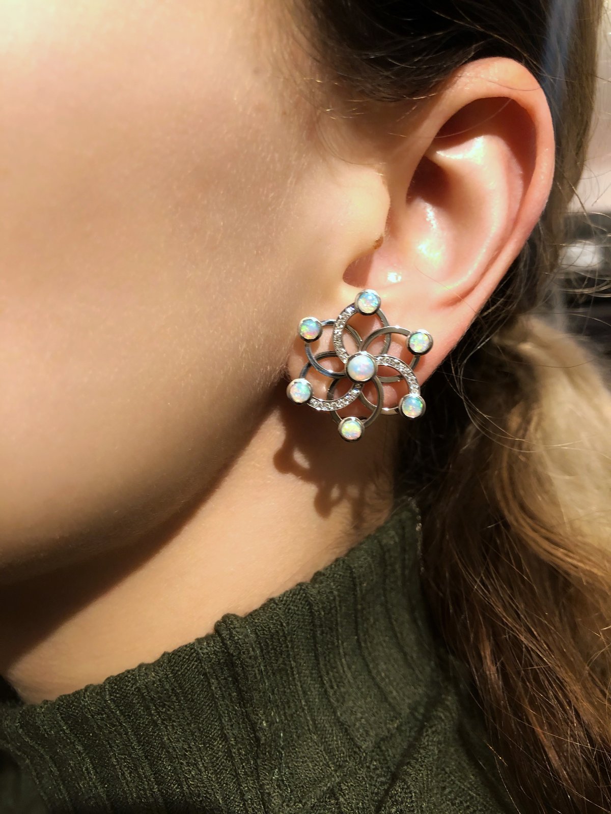 Inspired by Span M necklace, except Iris Nebula earrings each have 6 petals that create a beautiful symmetry
